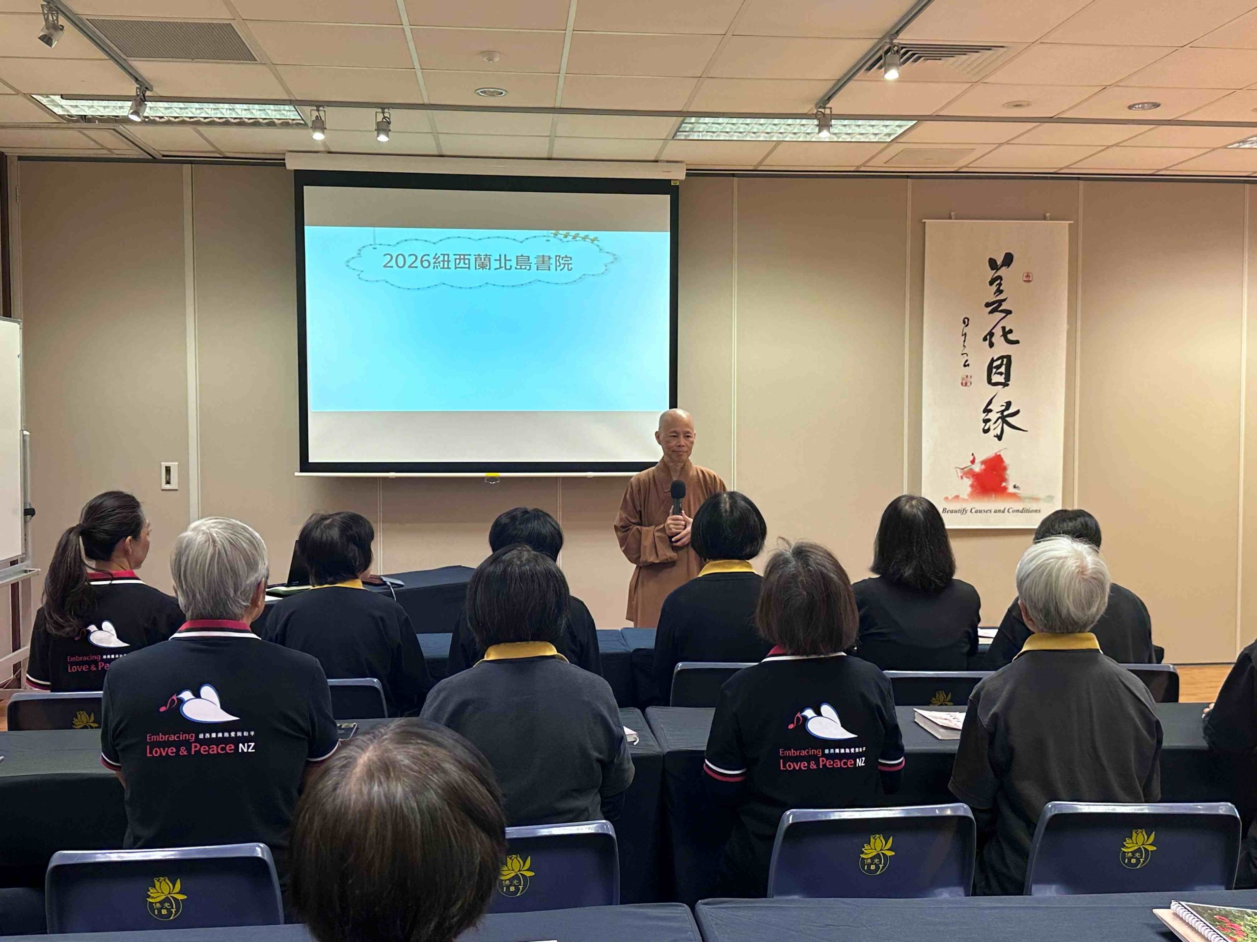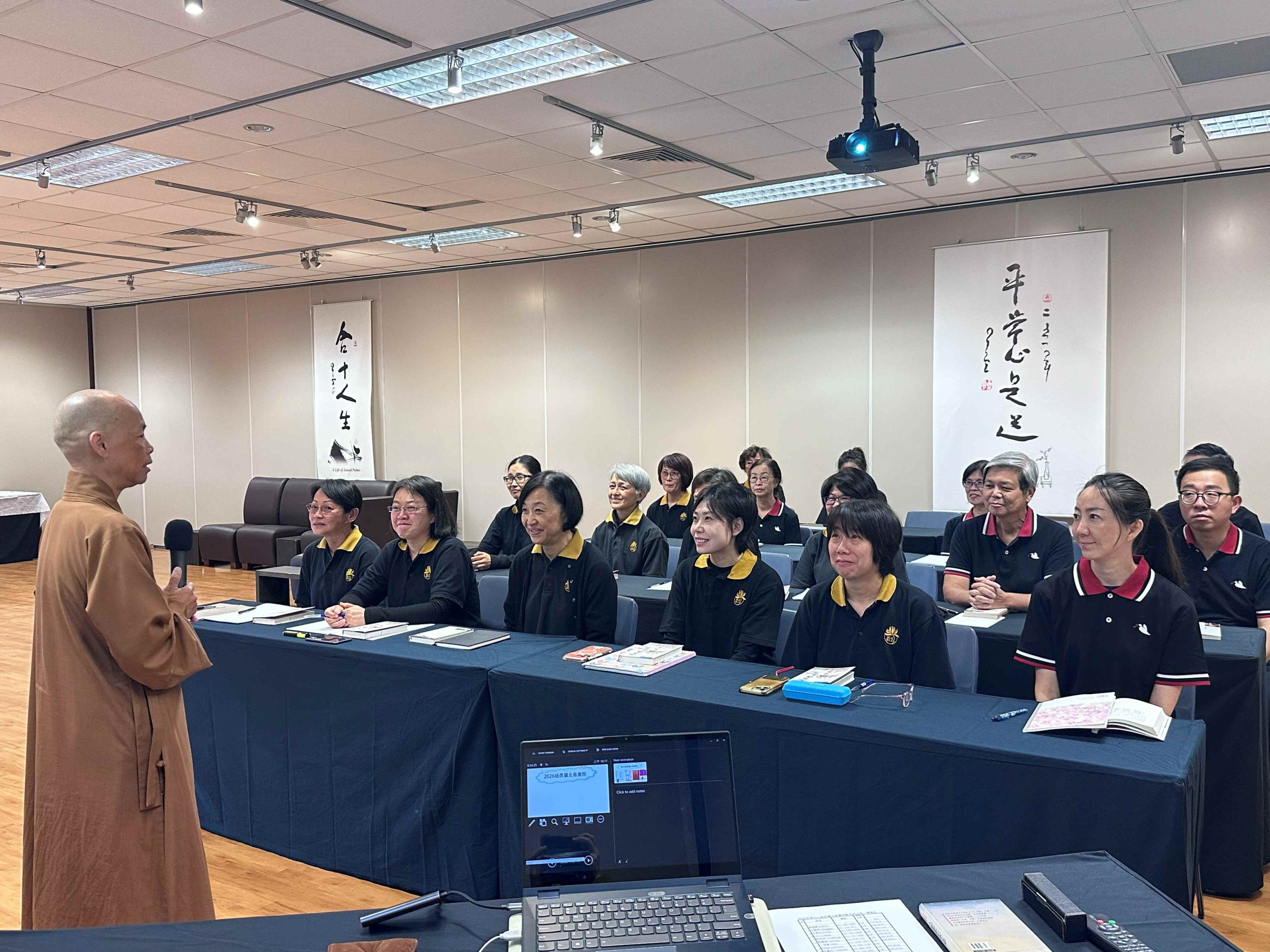 2026北島佛光書院第一學期於3月7日開課,由北島監寺如廉法師講授《人間佛教的慧學》,北島協會會長顧榆齡等25位學員報名參加。當日清晨,學員們透過前行功課使身心沉澱安定,並於大殿禮佛三拜之後進行跑香,大家精神抖擻,以清淨莊嚴之心迎接新學期的開始。