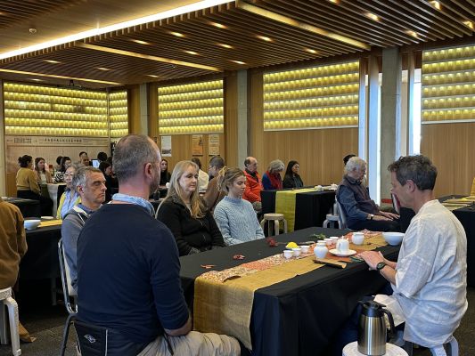 活動首先以妙光法師英文禪修播客引導大眾放鬆身心,隨後搭配柔和的古琴音樂及禪宗公案分享,行者將茶禪步驟一一展現,包括將花舉于眉間供奉十方諸佛;輕輕將茶葉置于竹簡讓大眾細品茶香茶色;將茶湯均勻倒入杯中讓大眾充分感受當下感受茶味;賞泉回甘感受白水的清甜,及欣賞茶葉潤泡後的狀態等等,帶領學員漸入茶禪的寧靜世界。