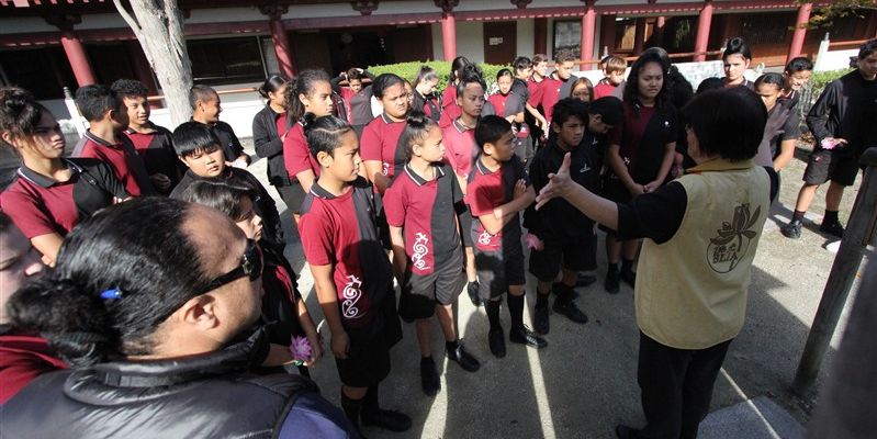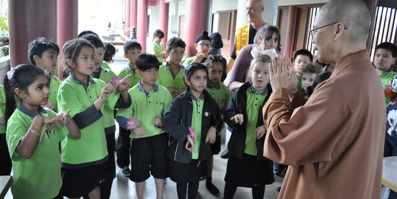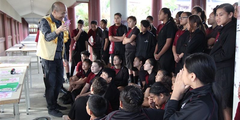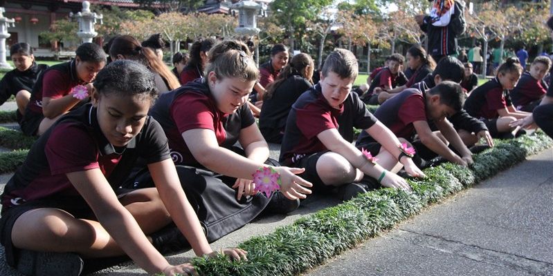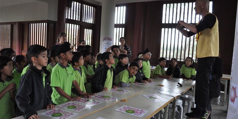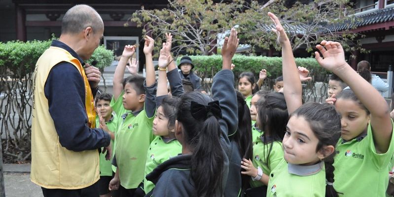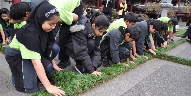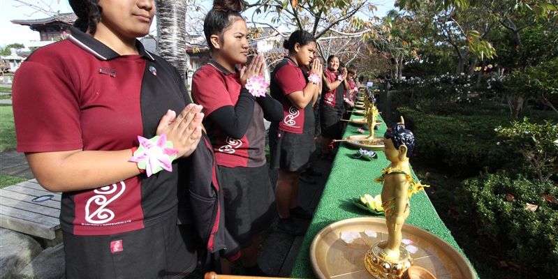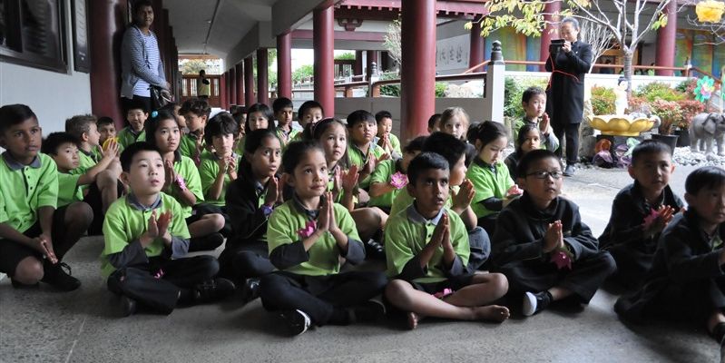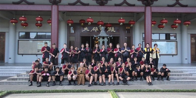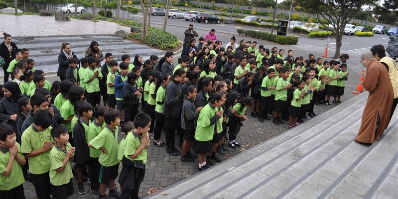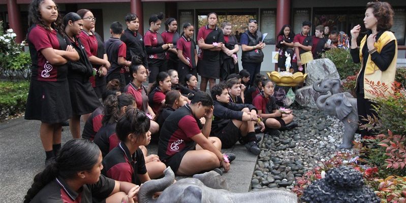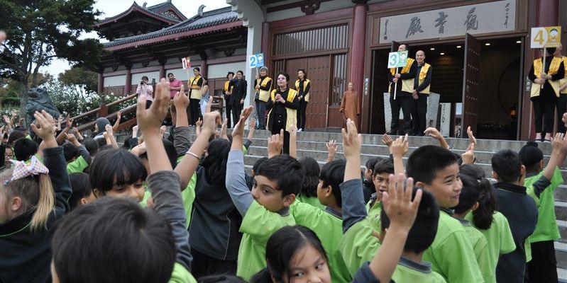 2018年第五屆「紐西蘭佛光山三好四給人間佛教文化節」5月10日進入第四天,上午北島佛光山迎來奧克蘭Panmure District School 及Manurewa Intermediate 兩所學校150位學生在師長的帶領下前來參加,北島佛光人也齊聚觀音殿前的文化廣場歡迎學生的到來並歡喜帶領學生展開3G4G系列活動。