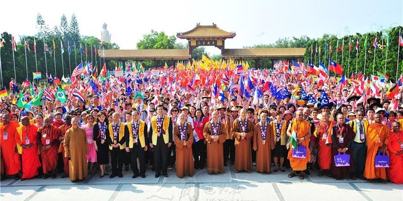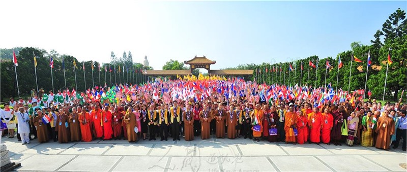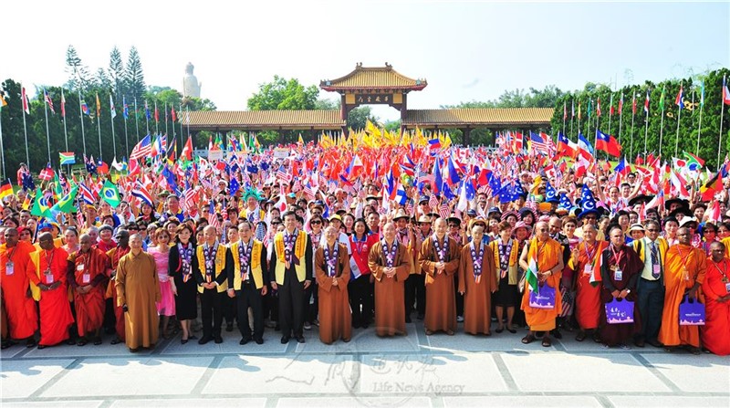佛光山寺住持心保和尚、人間福報發行人心定和尚、國際佛光會中華總會榮譽總會長吳伯雄,世界總會副總會長翁詩杰、余聲清,秘書長慈容法師、理事慧傳法師、財務長陳居、法制長林玉麗,以及分布世界各地的法師、佛光人在成佛大道大合照。