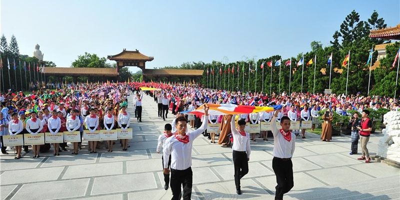 國際佛光會世界會員代表大會,10月4日在佛光山盛大登場,來自全球5大洲近百國家地區、百餘個協會、2千多位會員代表,齊聚大雄寶殿前成佛大道參加升旗典禮,各國國旗與佛教教旗隨風飄揚,揭示佛教已遍布全球。