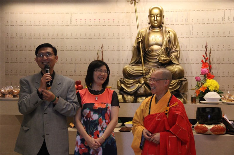 紐西蘭北島協會幹部陳榮輝、龔素寬夫婦,秉承慈心孝敬的傳統美德,於11月27日當天女兒的佛化婚禮祝福禮之際,攜全家及佛光人40餘人齊聚北島道場舉行家祭佛事。陳居士遠在台灣的姐姐、姐夫-佛光山榮譽功德主蔡國華、陳素雲伉儷,也專程前來祝福,紐西蘭佛光山住持滿信法師,監寺覺豪法師,北島協會蔡素芬會長及佛光人熱忱接待。