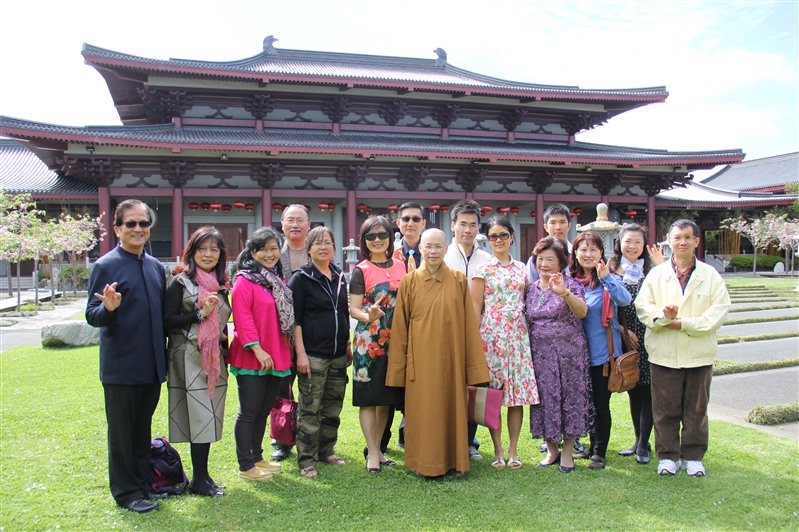 住持帶領大眾巡禮寺院環境,主修土木工程的蔡居士對北島佛光山如今的規模和建設表示由衷敬佩,感受道場的一磚一瓦透著無窮的生命力,傾注著常住法師和佛光人的用心經營維護,而寺院建築與園林設計亦是恰到好處,欣賞這櫻花爛漫、綠草青松的自然景觀對每一位參訪者皆是一次心靈的洗滌。
