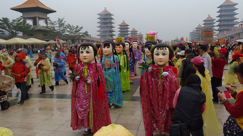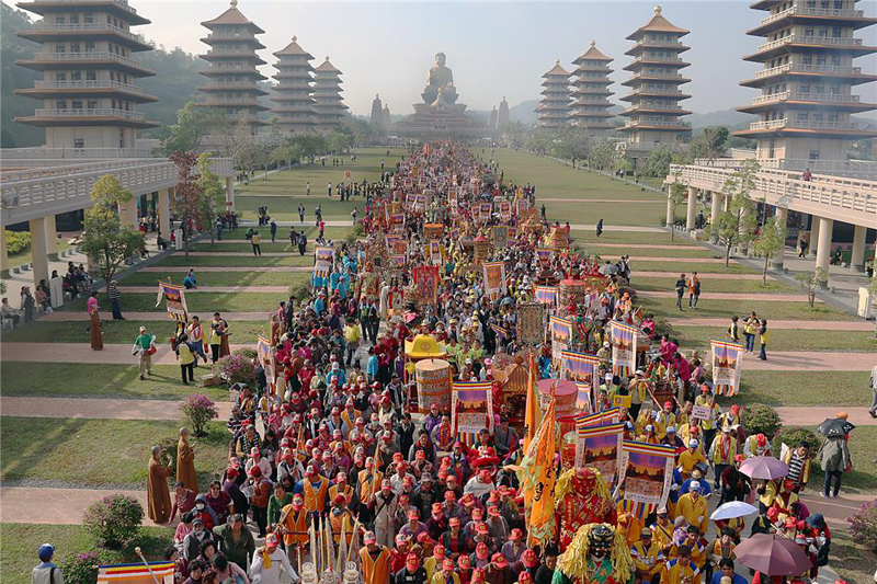 後來,神明愈來愈多,這兩、三年,上千尊的神明相約在十二月二十五行憲紀念日當天,也是耶穌教的耶誕節,來佛光山朝拜佛陀,作為各神明聯誼的日子,連菲律賓天主教的聖嬰、湄洲的媽祖、上海的城隍爺都來參加熱鬧。那一天,千位神明為萬千的信徒圍繞,在佛陀紀念館大覺堂和菩提廣場,或翩翩起舞、或者歡喜歌唱,真是不亦樂乎。讓人讚歎宗教界的團結和諧,猗歟盛哉,多麼美麗的台灣!
