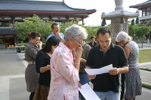 由北島協會副會長Linda、理事Lesley及英文分會幹部Peter精心策劃的「2009年首次英文分會新舊會員聯誼會」於2月11日晚假北島佛光山成佛大道舉行,北島協會楊比得督導、副會長陳榮輝、住持滿信法師、監寺滿望法師與英文分會幹部、會員及北島佛光青年分團員等50餘人共襄盛會,並由會員們各自帶領點心作為活動茶敘。於聯誼會中分別由楊督導、陳副會長、英文分會前任會長Vincent Chan與監寺滿望法師向大家拜年祝福,主持人Linda表示感謝常住提供舞台給大家充分發揮潛能,同時在活潑的生命中有素樸的佛法相伴,體驗人間佛教的人間性、生活性、利化性等的教育理念,用佛法來指導日常的生活。住持滿信法師勉勵大幏除了為自己建舞台,也為更多人搭建平台,把寺院當作百貨公司、學校,經常回寺挖掘智慧寶藏,豐富自己的生命,讓生活富有色彩。