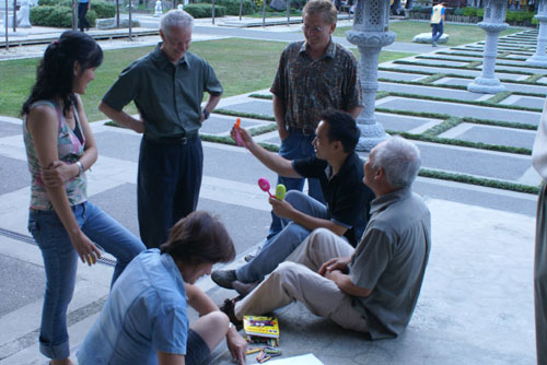 活動策劃組Peter Batten亦利用問答題中讓彼此在尋找答案的同時,讓彼此相互認識外,同時將大家分為三組~「資訊組、讀書會文宣組、佛教本土化組」的進行實際會務的操作運用,令彼此了解幹部們如何協助道場文化教育工作及無私貢獻的精神。