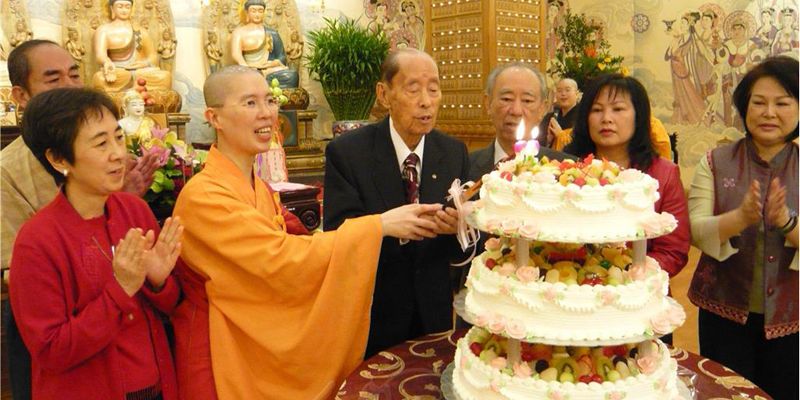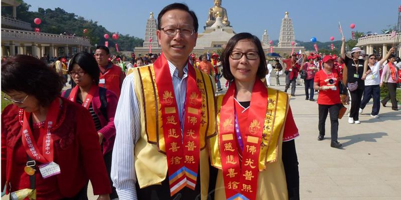 後來,他不但對我們在外國創立的道場,如美國西來寺等幫助很多以外,尤其捐獻輪椅,不只百萬輛以上,幫助了多少行動不便的人士。他一直都說:「我奉行大師的話,我要行佛。」因為這樣子,夫妻對同一個宗教,有共同的理念、信仰,當然感情就非常的美滿了。