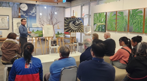 南島佛光山「週日藝術巡禮」持續推出,於6月21 日四位來自基督城女士都參加此活動,Ms. Diana Patten一人加上Mrs. Gene和兩位好友都在滴水坊享用特別精緻套餐。一行人品嚐香濃咖啡後,由紐西蘭南島協會鄭海文會長及佛光緣美術館紐西蘭二館李思嫻為進行寺院導覽。