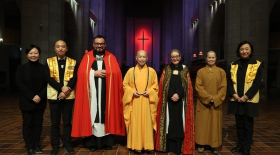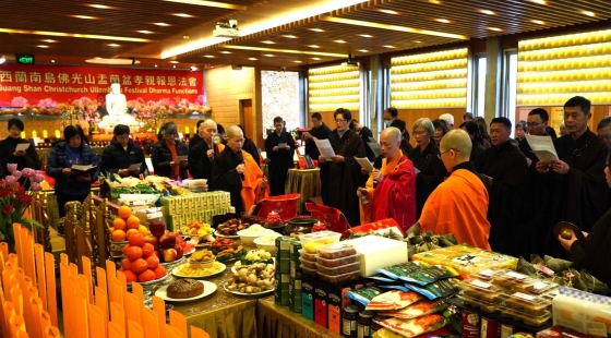 鄭海文會長為她們解說道場的外觀設計是根據著名的《龍門石窟》的概念,帶領她們參觀時光隧道並介紹星雲大師的生平及人間佛教理念。一行人也在如來殿參觀並聆聽佛陀的教義和道場的設計用意。隨後她們也到圖書館見識佛法經典,Ms. Diana表示驚訝佛法經典的數目之多真的讓她歎為觀止。最後,四人都感謝義工和鄭海文會長的款待及充滿知識的寺院導覽並在姚紅英的著名的王昭君刺繡作品前留影。她們也答應會再次回來觀賞美術館下個月的新展。