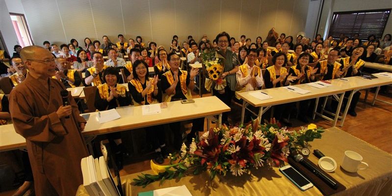 「讀書,不能只是在感覺和觀察的階段,而要轉化成概念,並創造出更新的價值。」簡老師指出讀書是幫助培養一種學習的能力,而讀書會是在相聚中分享生活、交流意見,建立良好的友伴關係,探索內心的感動和生命的意義。簡老師並結合實例,詳細解析讀書會的三種帶領方法1)表達與演說法;2)讀書結構法;3)意識會談法 ,勉勵佛光人用快樂、好玩的心情來讀書,用佛法的智慧親近生活。