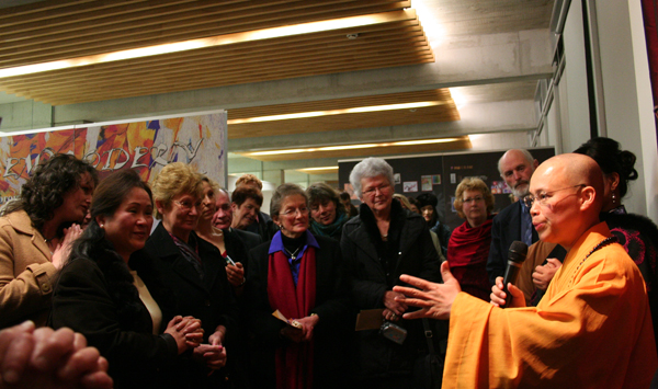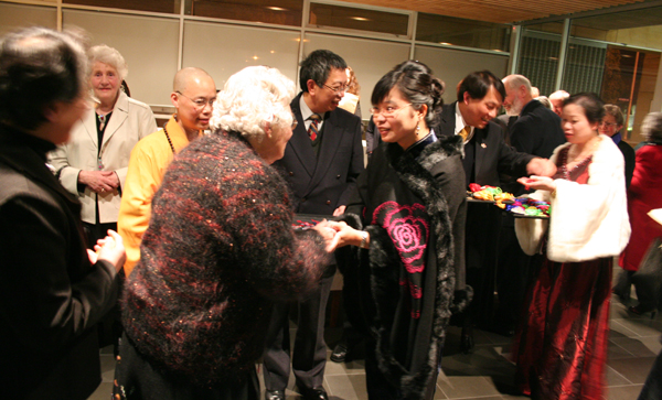 姚紅英小姐在館長滿信法師翻譯下發表感謝詞,她道出從8歲開始到現在的刺繡旅程讓她經歷了不少喜怒哀樂。在這刺繡創作路途上,她感謝老師和星雲大師對她的栽培和提拔,她也感謝基督城的大眾對她的愛戴、支持和鼓勵。這幾天在基督城的回憶會是她在日後的創作靈感泉源。大眾都報以熱烈的掌聲給予姚紅英小姐。