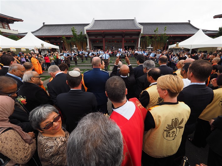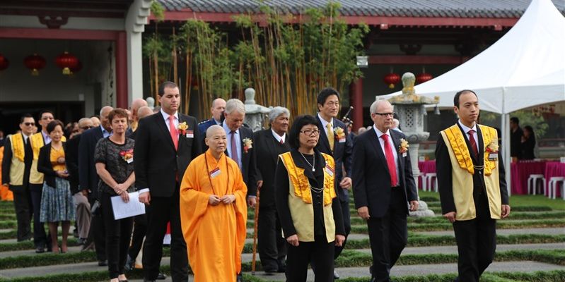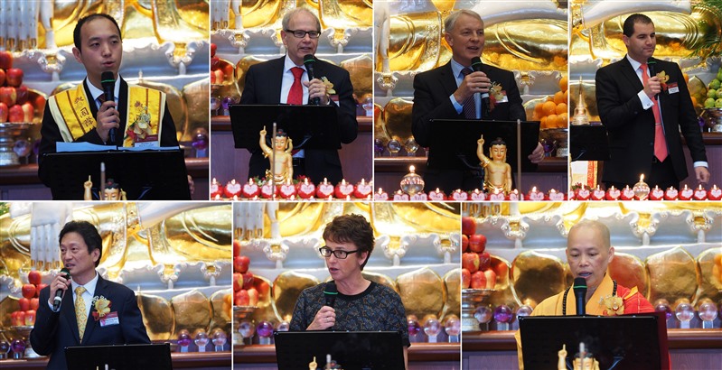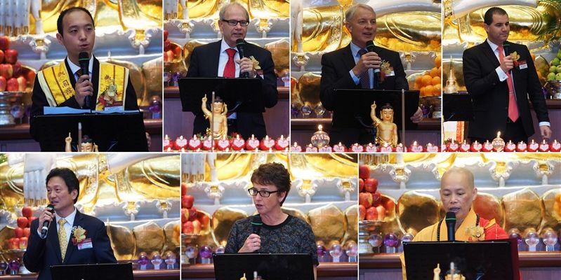 與會的特別貴賓大奧克蘭市市長Len Brown讚歎北島道場建寺至今從一個偏壤陌生的角落,轉眼變成了凝聚慈悲、力量和正義的基地;Botany區國會議員Jami-Lee Ross欽佩佛光山始終堅持分享慈悲智慧、傳遞和諧和平;Mt Roskill區國會議員Hon Phil Goff表示浴佛節是促進多元種族交流的平台,展現不同文化所呈現的價值觀,帶動正能量的發揮。台北經濟文化辦事處周總領事中興博士指出,佛光山是台灣重要的宗教團體,紐西蘭佛光山更是將人間佛教在海外發揚光大。紐西蘭人權組織種族關係委員會首長Dame Susan Devoy女爵談到,佛光山不止推廣人間佛教,更透過文化、藝術、教育來傳送一份真善美,呈現佛教的包容性。