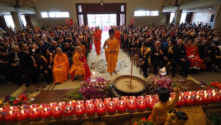 浴佛法會由紐西蘭佛光山住持滿信法師領眾誦經祈福,帶領貴賓浴佛,並邀請各宗教代表祝禱,在多元融合的祥和氛圍中紀念佛陀誕生。大會也安排透過影片欣賞,讓與會者了解星雲大師開創佛光山至今50週年的弘法回顧。