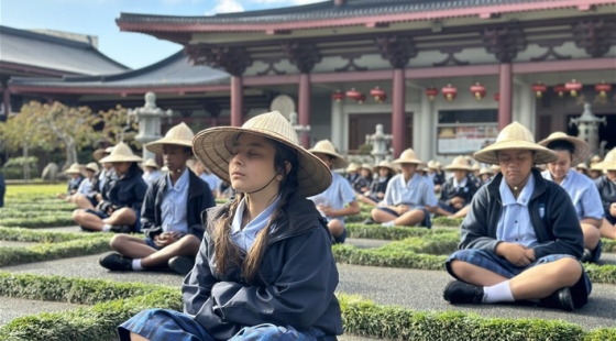 大家在一棵百年大樹下閱讀師父上人《人間萬事》–「做最好的自己」一文,內容分八點教導大家做人做事的道理。妙禹法師開示個人修持福報不一樣,每個人都要把自己的角色扮演好,不要自以為是,要時時配合常住的要求做個甘願被教導的人;起初要外在進步,進一步則要求內在進步,放下身段發心工作才會有心及腦的進步空間。法師同時勉勵大眾有時間要常回道場,投入佛教事業,每個人都是走在同一條路上雖然彼此願心不同。