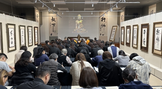 陳普常檀講師分享個人佛教的理念及對如何修行守護菩堤心的看法。最後妙禹法師講述幾個小故事來強調做一個簡單、清淨、沒有人我是非、只知一心念佛的人會有善報善終,做小事隨喜功德可增加福報。人要多笑口常開也是會改變問題煩惱。大眾在輕鬆愉快的氣氛下享用點心,並歡唱佛光歌曲為活動畫下句點。