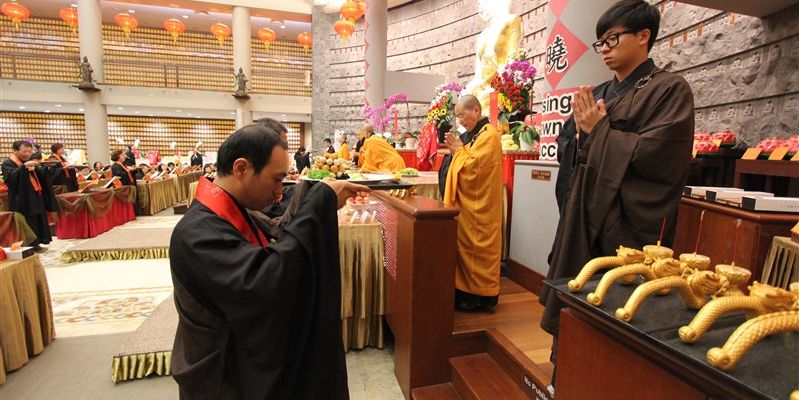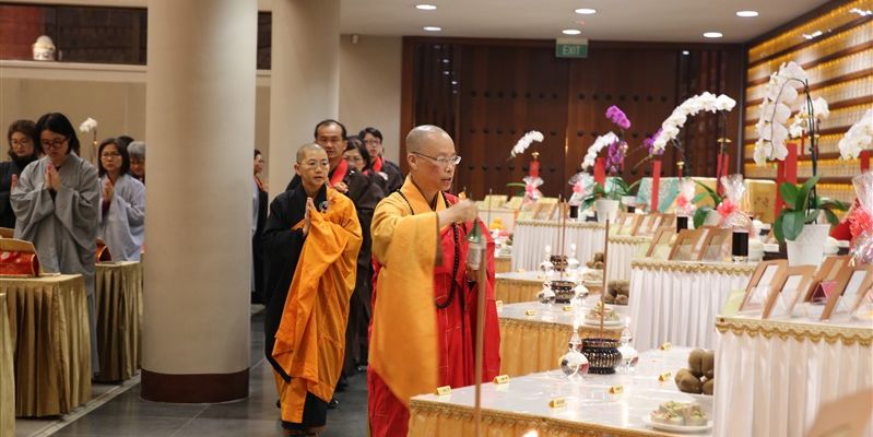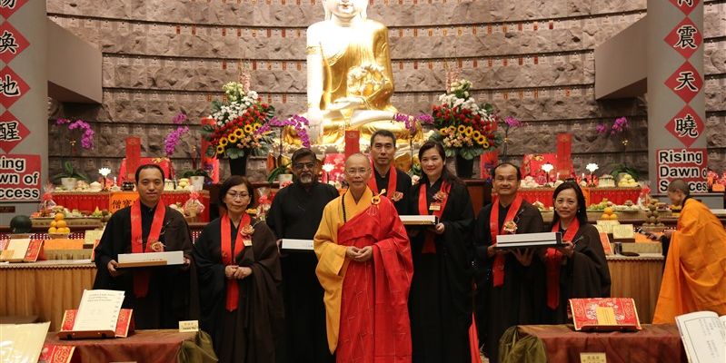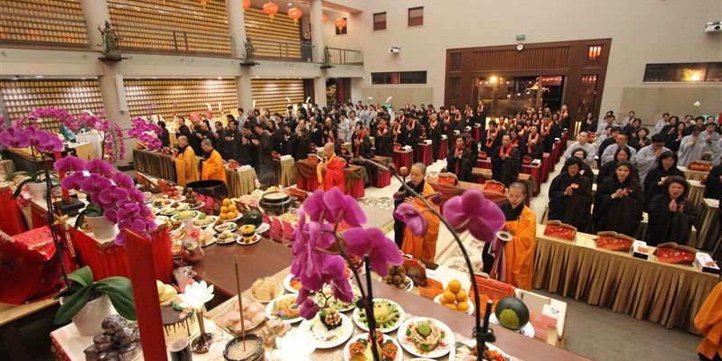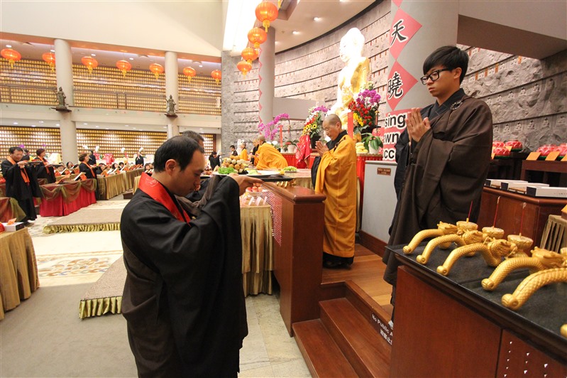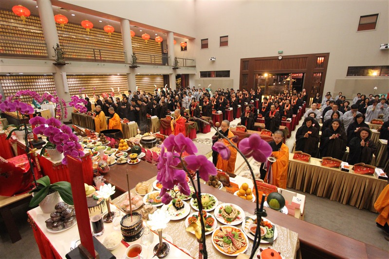 一年一度紐西蘭北島佛光山「供佛齋天祈福法會」,2月4日晚在莊嚴明亮的大雄寶殿舉行,近300位信眾準時出席,紐西蘭佛光山住持滿信法師主法,領眾禮拜《金光明經》,並以虔誠的供養心,祈請佛法僧三寶、二十四諸天及侍從天用齋。