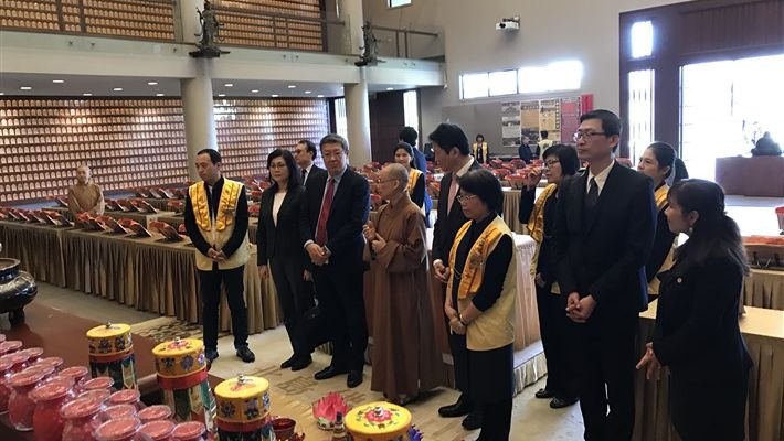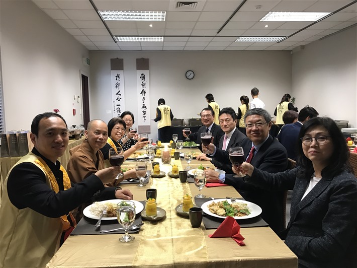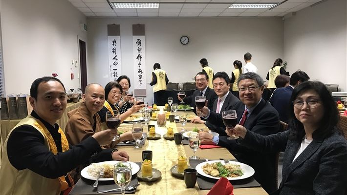 4月1日中午,中華民國駐紐西蘭介文汲大使賢伉儷,甫到任即由駐奧克蘭台北經濟文化辦事處周中興處長及秘書處三位同仁由僑務顧問陳天福賢伉儷陪同ㄧ起拜會紐西蘭北島佛光山,受到住持滿信法師、如廉法師、督導委員會蔡素芬督導長、北島協會余林濤會長、分會督導梁崇儀、戰霈綺及協會理事、幹部、佛光中華學校曾怡華執行校長等熱列歡迎。