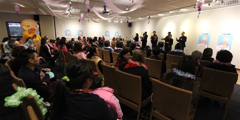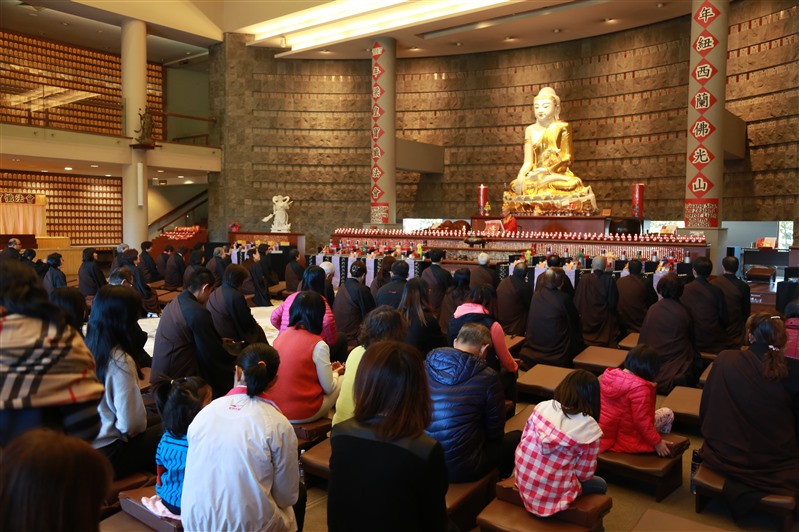 紐西蘭北島佛光山5月14日慶祝母親節,百餘位大眾一早來到大雄寶殿參加「母親節獻燈祈福法會」,由紐西蘭佛光山住持滿信法師領眾諷誦「父母恩重難報經」及恭讀星雲大師「為父母親友祈願文」。