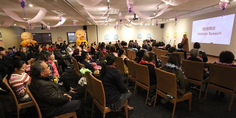 住持於開示中期勉大眾要懂得歌頌母親的偉大、感恩母親的養育,並指出悉達多太子的母親是摩耶夫人;佛陀的母親是般若。佛陀不但是我們的老師,更是我們的母親,佛陀用慈眼視眾生、用慈心度眾生、用佛法開導眾生,讓我們開發潛能及增長智慧。