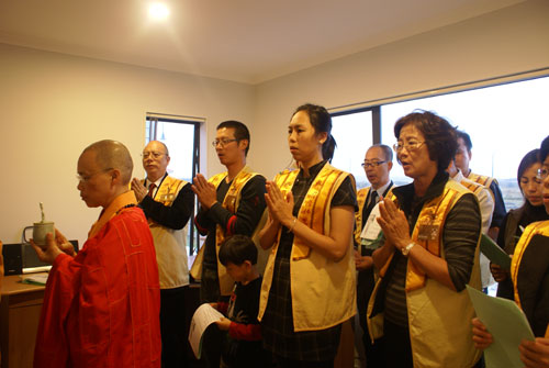 佛教在紐西蘭的發展是大師給予的使命~北島佛光山家庭普照 03 月 15, 2010 3月13日是北島佛光協會東二分會前任會長楊兆基已第七次邀請北島佛光山師父為他的新居灑淨。每次新居遷入他都會邀請法師灑淨,並且成為其信仰中最重要的一部分。此間新居乃由他親手建蓋,並且在道場咫尺,故更方便其全家親近道場。住持滿信法師帶領50位佛光人出席,同時分享當天「杭州佛教市協代表團」蒞臨北島佛光山的盛況,以及大家對道場的清新感覺與充滿朝氣的廻響等。住持表示佛教在紐西蘭的發展是大師給予的使命,讓佛光會與道場一起實踐弘法事業,呈現一個有內容有品質的團隊,共同發揚人間佛教文化教育理念。