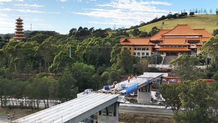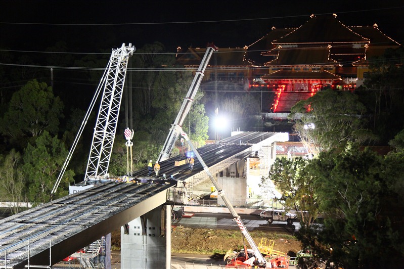 2018年2月11日凌晨4點,連接南半球最大寺廟南天寺與澳洲唯一由佛教創立的南天大學的「南天橋」, 10塊主橋梁歷時30小時組合完畢。為使施工順利,澳紐總住持滿可法師帶領南天寺法師至工地,再次為大橋灑凈祈福,Project Coordination 工程公司總經理 Stephen Morgan,建築經理Mark Murphy及工程師等亦歡喜出席。