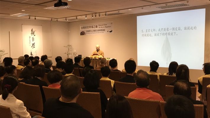 慧昭法師以1)諸相非相、是法平等、無住生心的分解,加上幽默風趣的人間故事詮釋金剛經及佛法義理,令大眾笑聲連連,並且引用人間因緣的歌曲帶動大眾ㄧ起合唱,讓大家從大師的歌詞中獲得心開意解。在進階段的演說中亦說明禪的重點即在離相,如惠能大師「外離相即禪,內不亂即定」,而我們ㄧ般人之所以會有很多痛苦煩惱,就在於執著我相;所以人生幸福之道就在於「不要把快樂的鑰匙交給別人」,即如星雲大師所言:「人生最可悲的不是身體上的缺陷,而是心理上的不健全」。