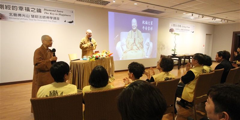 佛光山副住持慧昭法師於3月13日晚上七點在紐西蘭北島佛光山光明堂講說「金剛經的幸福之鑰」吸引廣大社會大眾近二百人前來聆聽。慧昭法師ㄧ開始就用淺顯易懂的文字般若來銓釋人生幸福之道,即如1、不要拿自己的過失來懲罰自己、2、不要拿別人的過失來懲罰自己、3、不要拿自己的過失來懲罰別人;人生沒有過不去的事情,只有過不去的心情,以及快樂不在於擁有的多,而是在於計較的少等等,讓與會大眾深思生命的價值與生活的樂趣。