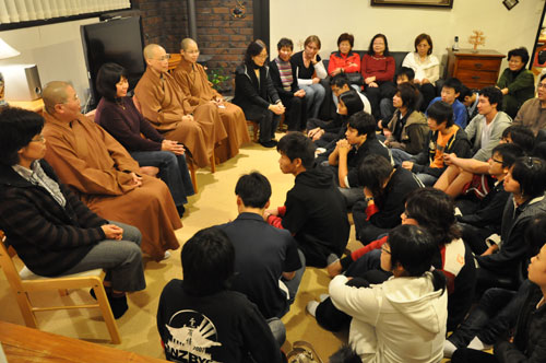 北島佛光青年家庭普照家庭三代同堂以法會友 06 月 06, 2010 紐西蘭北島佛光青年分團第一分團幹部Jeremy於6月4日特邀北島佛光人前往其府上家庭普照,住持滿信法師、如廉法師、妙宇法師、北島協會會長蔡素芬、北島青年分團1及2團團長、青年團員與會員義工50人聚集。青年們分享加入佛光大家庭之學習與收獲,感謝常住大眾之照顧與扶持中成長,培養堅毅的信心突破困難,更發願把握當下之因緣,以服務貢獻作為回饋。住持勉勵從佛法的實踐與體驗作為成長的營養品,並衝擊生命的火花,點亮心燈照亮他人,更將堅忍的毅力與信心於生活,共同完成生命的功課。
