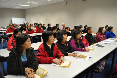 紐西蘭北島佛光山經典導讀密集佛學班6月23日晚進入第二天課程, 住持滿信法師帶領導讀「如法受持第一義諦分第十三」和「四相寂滅起大乘行分第十四」,從住持的幽默及簡而易懂的解讀方式,讓在場的60名學員互動熱烈,深入理解與學習金剛經的般若智慧。