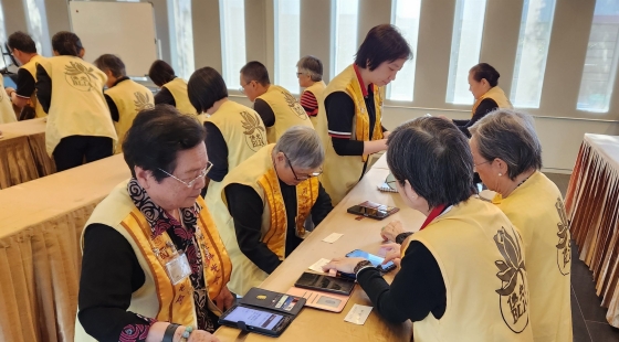 所有佛光緣之友一邊享用滴水坊精心準備的茶點一邊觀賞藝術家的創作。一位年齡已經超過90歲的佛光緣之友在70幾歲的女兒陪同下一起出席,她表示今年她已經來紐西蘭二館欣賞姚紅英刺繡7次,每次都帶著不同的朋友前來,每次都非常歡喜,而且幾乎成為專業的導覽人員。