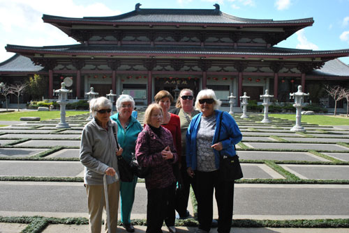 紐西蘭北島佛光山盲人協會「用心」感受 10 月 05, 2010 紐西蘭盲人協會一行7人10月5日由協會義工Glenis帶領至北島佛光山寺院巡禮。Glenis 乃是消遣俱樂部會員, 曾在7月份隨其俱樂部參訪道場,被其寧靜安祥氣氛攝受,特為盲人協會6人安排此次行程,共享喜悅。6人透過隱約的視力, 悠悠走在成佛大道櫻花樹下, 用心感受道場的叢林造景, 聆聽百鳥爭鳴及虔誠地許下願望等。導覽義工黃先生解說道場建築特色和含義,期望透過語言,讓她們把人間佛教弘法理念帶回家。