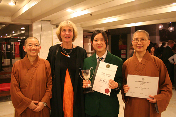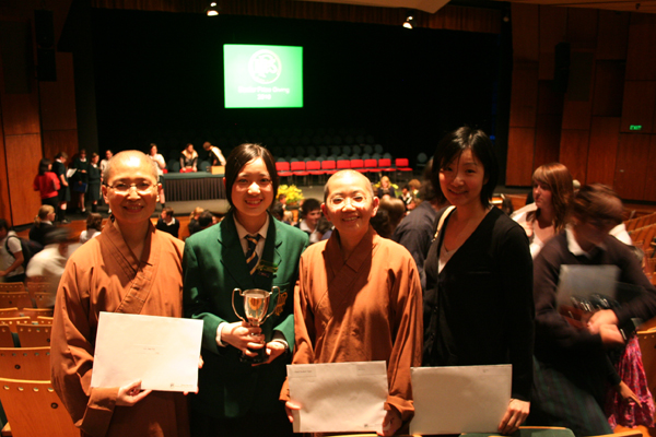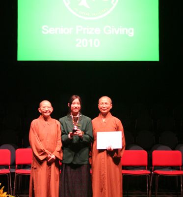 紐西蘭南島佛光青年林浩婷4 年前自台灣來基督城讀書,就讀於Papanui高中主修藝術科系,今年學業完成,並於11月10日舉行畢業典禮。南島佛光山監寺覺西法師、妙禹法師、美術館公關李思嫻和義工王真文一同出席觀禮。典禮於基督城市政中心的禮堂舉行,成績優秀的林浩婷三度上臺領取最佳電腦設計獎、最佳繪畫獎和最佳英語非母語人士獎。台下的法師們、老師和朋友都為她的成就感到歡喜和驕傲。她也代表外語係學生上臺致詞並感謝老師、同學、朋友及家人的支持和栽培。