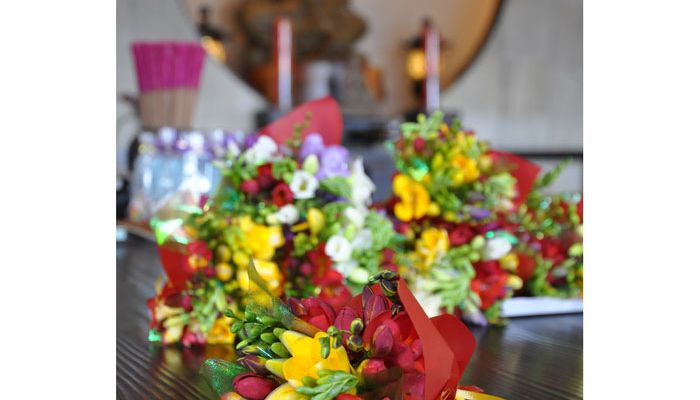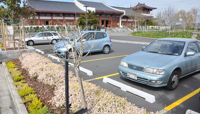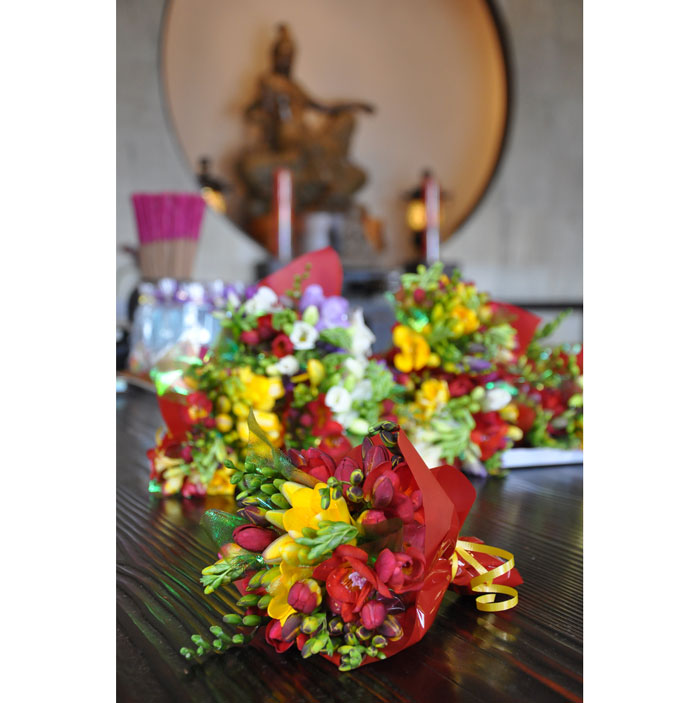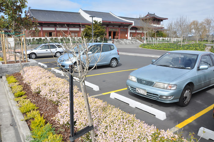 告別了嚴寒的冬天,又是紐西蘭北島佛光山各種花卉開始爭香鬥麗、百花齊放、嬌艷花姿訴春的到來。進入山門即見色彩繽紛與春天氣息的景象映入眼簾,讓人心曠神怡之餘,亦展現生命的活力。種植在停車場周圍、吸取充足日光浴而呈現金黃色的Sunset gold開滿了粉紅色小花,並且與紅彤彤的Firepower Nandina「葉變樹」共相奪目,熱烈迎接來寺的信眾。同時豎立在成佛大道的56棵櫻花樹也正含苞待放, 周邊的茶花更是迫不及待地開出白色及紅色的花朵,成功地吸引大眾讚嘆的目光;大雄寶殿前的Sunset gold則以悠悠清談的花香供佛;滴水坊外原本不起眼的雜草也開出紅、黃、白、粉紅、紫色等的小花,原來它竟是美麗的紫心蘭Freesia。此五彩的紫心蘭每天都輪流開放, 栽剪下來的紫心蘭在義工菩薩巧手包裝後更顯高雅,提供信眾以花供佛。