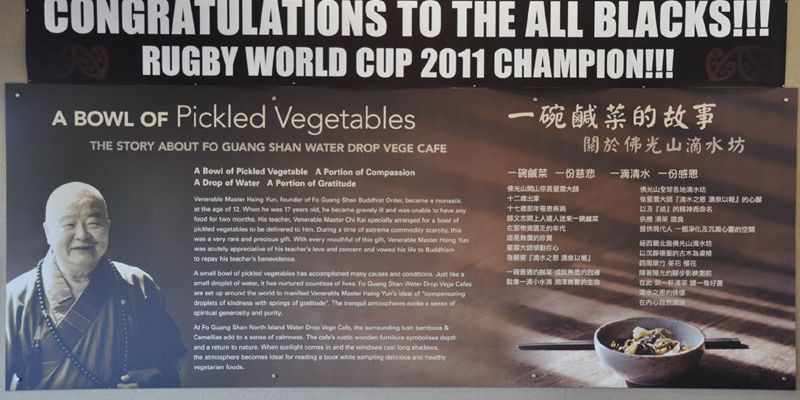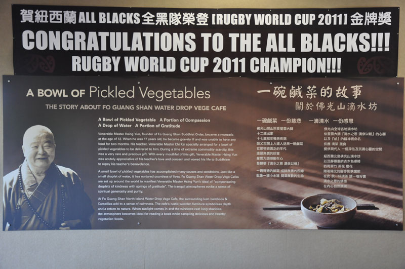 紐西蘭北島佛光山為了替本國的All Blacks全黑隊加油,常住也在十月十六日及廿三日舉行的『藥師法會』上,為All Blacks全黑隊點燃『藥師燈』祈福,佛光人也紛紛點燈許願,以求佛光加被全黑隊員們身體健康、出賽平安、贏得冠軍為國爭光,充分流露了佛光人『三好四給』的悲心。