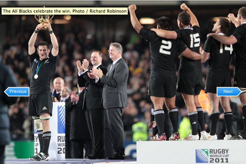 二0一一年世界盃橄欖球賽九月在紐西蘭舉行,各國的勁旅經過一個多月的激烈賽程後,由紐西蘭All Blacks全黑隊與法國隊勝出,於十月廿三日晚間,進行決賽爭奪冠軍。紐西蘭All Blacks全黑隊憑著優越的球技和堅實的攻防,以八比七擊敗法國隊,勇奪二0一一年世界杯橄欖球賽冠軍;法國雖敗猶榮獲得亞軍、澳洲隊則在廿一日晚上,以廿一比十八力克威爾斯獲得季軍。