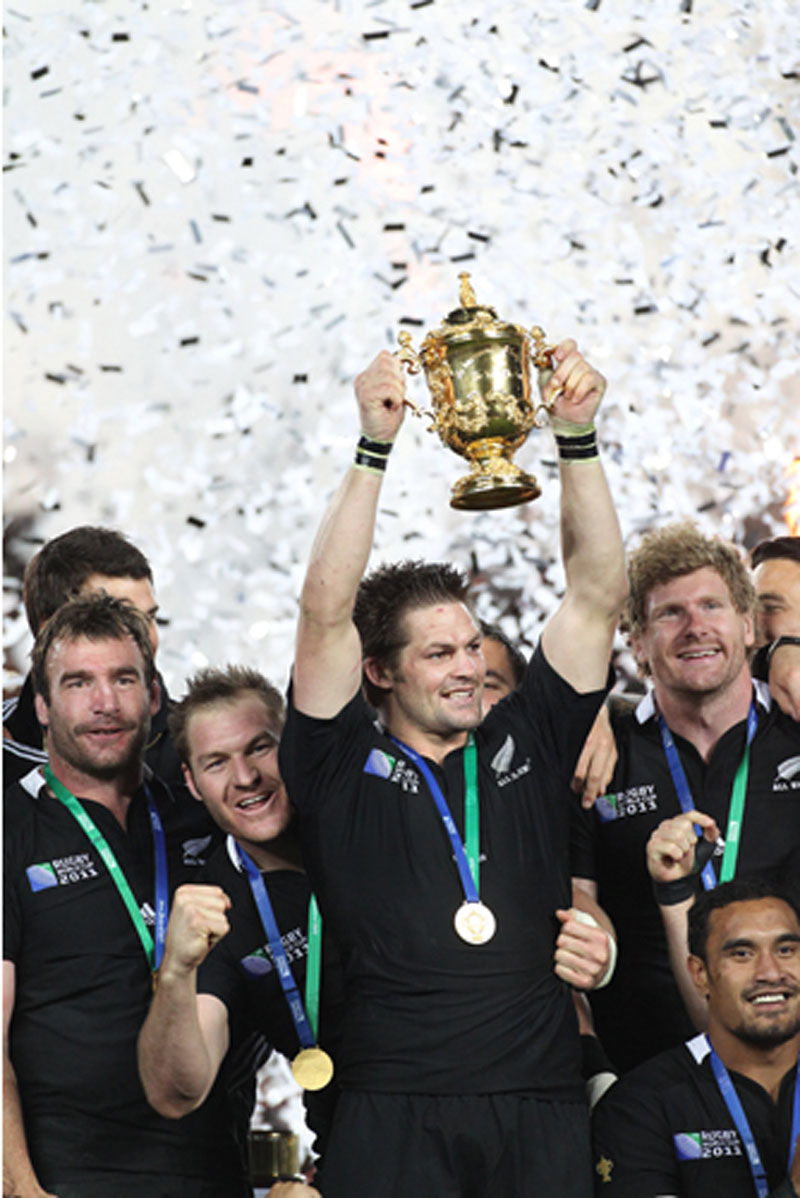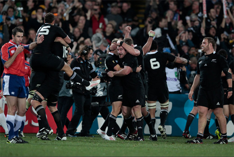 四年一度的世界盃橄欖球賽,於九月九日在紐西蘭的奧克蘭市開幕後,來自全球廿支最頂尖的橄欖球隊,經過四十五天,四十八場的激烈分組預賽和準決賽之後,由最後勝出的紐西蘭All Blacks全黑隊和法國隊,在十月廿三日晚間於奧克蘭市的伊登球場展開冠軍爭奪戰。上屆世界盃橄欖球賽的冠軍南非隊,則在準決賽前的八強對決中遭澳洲隊淘汰,痛失衛冕機會。