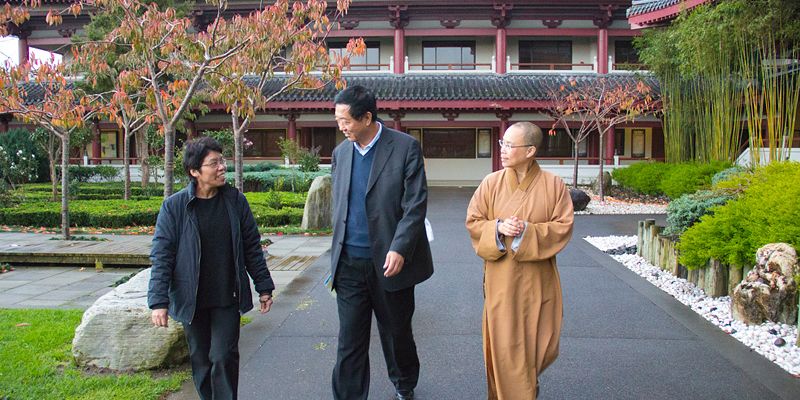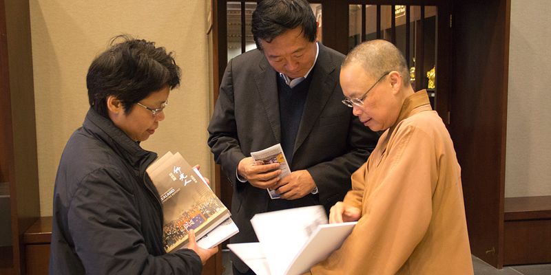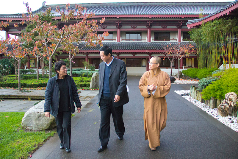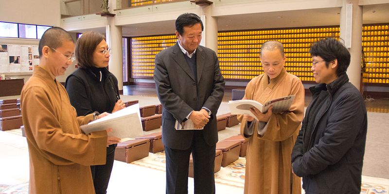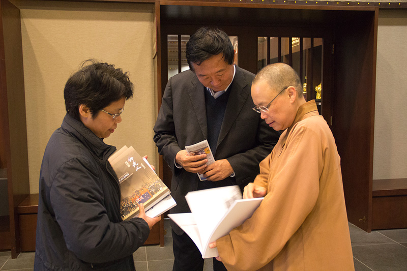 酷愛書法寫得一手好字本身也是金陵書畫院名譽院長李關長,看到大師的字圍繞著文化走廊很是感動 ;同時表示難得在國外可以看到如此壯觀的道場,對大雄寶殿壁上的雕刻佛像一眼即看出是來自中國福建崇武岩石,並且對蓮池塔建造理念的簡潔亦相當不容易。住持表示佛光山都是與人有關的事,以尊重生命的理念為大眾服務,並且歡迎李關長再次回來開畫展。常住贈2012紐西蘭佛光人活動報告及《人間》一書結緣。