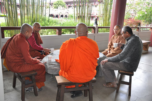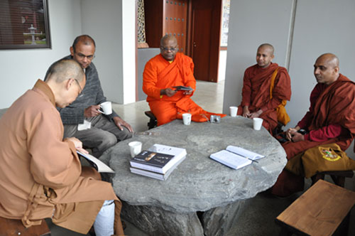 斯里蘭卡法師北島佛光山寺院巡禮,促進佛教文化交流 11 月 09, 2012 來自斯里蘭卡駐新西蘭的3位法師在義工的陪同下,11月8日上午前來紐西蘭北島佛光山參訪,住持滿信法師、覺觀法師接待。在導覽參觀後,一行4人讚歎道場的建設獨特,頗有殊勝莊嚴的氣氛。住持介紹道場唐式建築及蓮池塔等硬體建設,並贈送經本、大師著作《佛說八大人覺經》、《金剛經講話》、《佛法要義》、《人間》等書結緣,表示兩國的佛教文化交流會源遠流長,希望共同將佛陀的慈悲與智慧長流人間。
