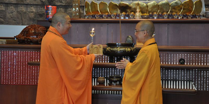 來自中國浙江省佛教協會副會長(天臺國清講寺住持)允觀法師12月14日上午,與慈滿法師~浙江省佛教協會副秘書長(安吉靈峰寺住持)、曙晏法師~浙江省佛教協會副秘書長(麗水南明山仁壽寺監院)、陳振華先生(浙江省佛教協會顧問)、馬繼寧先生(浙江省佛教協會顧問)、印可法師(浙江省佛教協會秘書)6人,前來紐西蘭北島佛光山拜訪,住持滿信法師、覺豪法師、覺觀法師、北島協會督導楊比得、中華學校執行長長盧淑真、協會幹部及佛光青年等15人接待。