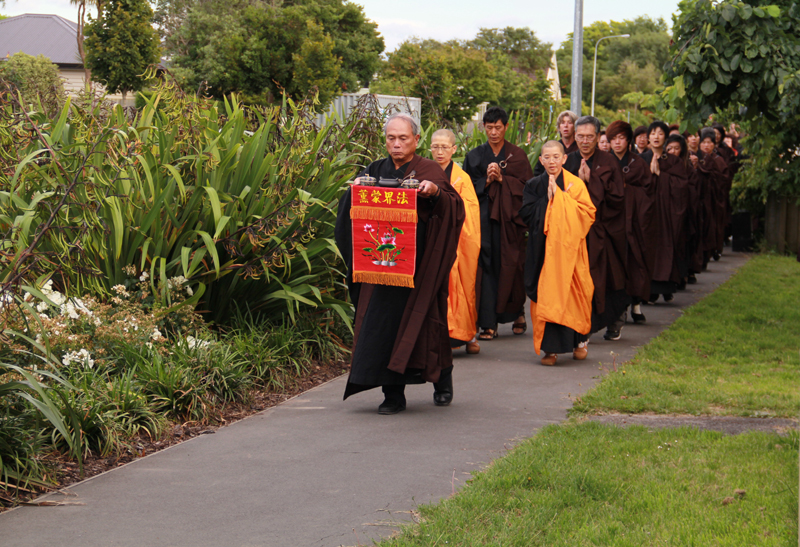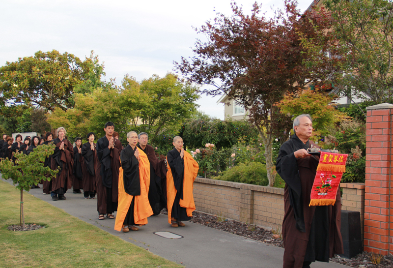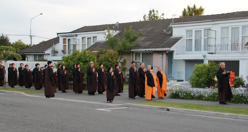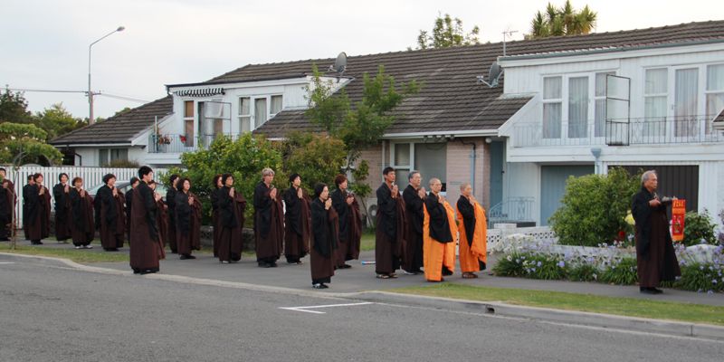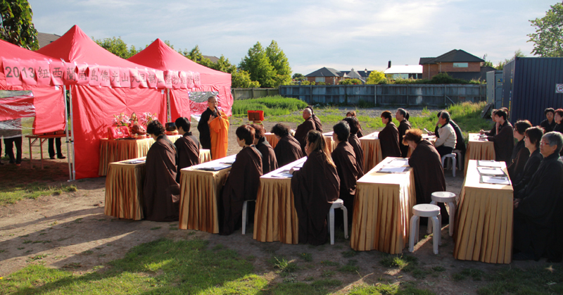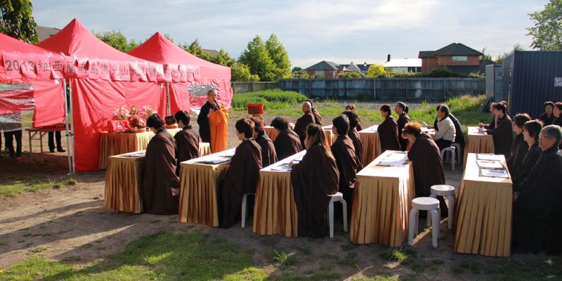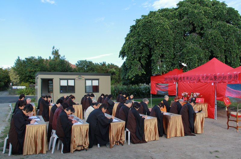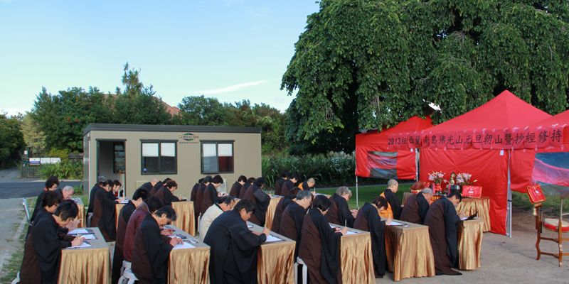 由於紐西蘭位於地球最東端、現正值夏季,時區是格林尼治平时的13個小時,紐西蘭南島佛光山於2013年1月1日6時10分迎接第一道曙光外,也舉辦2013年度全世界最早的元旦朝山暨戶外抄經修持。監寺覺西法師、妙禹法師帶領約40位佛光人及信徒在道場旁廣場,諷誦《心經》為朝山起步,並從Kilmarnock Street和Harakeke Street的人行道上開始三步一拜。眾人以最虔誠的心稱念「南無本師釋迦牟尼佛」佛號,為自己許下一個全新的未來。經過一個小時的朝山路程,大眾回到廣場上繼續進行抄經修持。這是南島佛光山的第一次露天抄經,柔和的微風、早晨的陽光及清新的梵音讓抄經的大眾倍感平靜祥和。