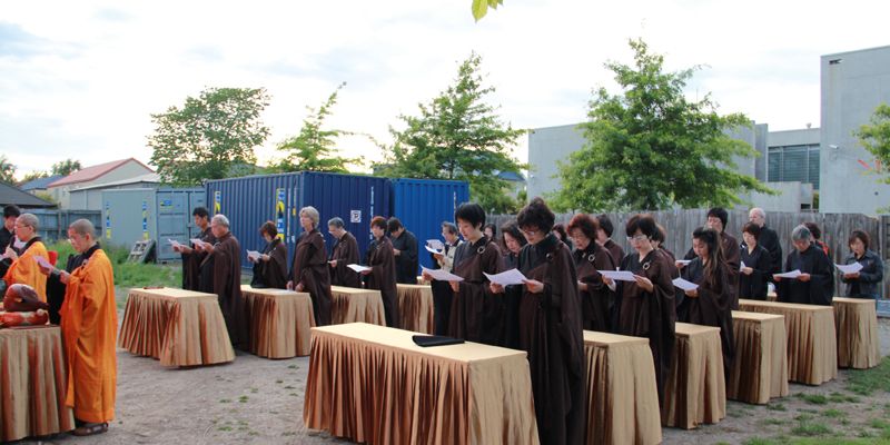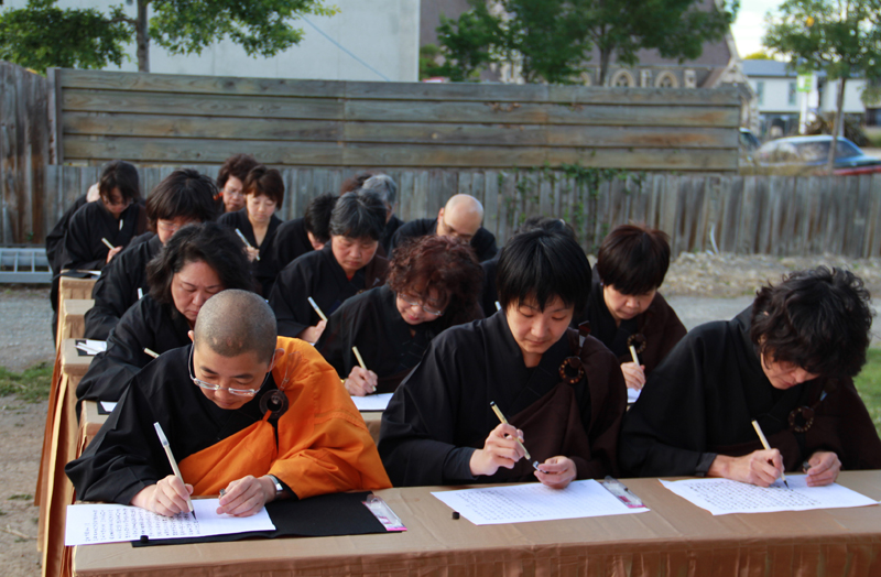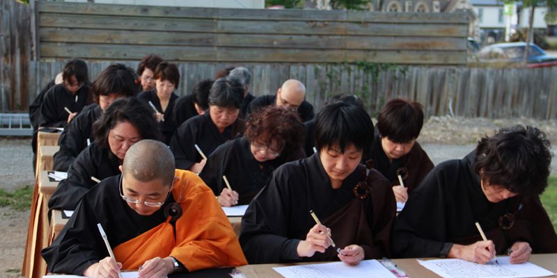 覺西法師開示今天參與朝山抄經的大眾都是有福報的人,來世必定也是佛陀的子弟;雖然道場還在維修,大眾可以再度參加朝山和抄經修持是件幸福的事情。覺西法師引用大師2013年贈送予大眾的法語「曲直向前 福慧雙全」鼓勵大眾在遇到困難及挑戰必須勇敢面對向前行、也因此而得以增長福德及智慧。會後常住準備熱騰騰的臘八粥與參與修持的大眾結緣,香噴噴的臘八粥讓人回憶起佛陀成道的艱辛,更提醒自己要精進向前。大眾感謝常住提供殊勝因緣讓他們可以回來親近道場,並以歡喜清淨的心迎接新的一年。