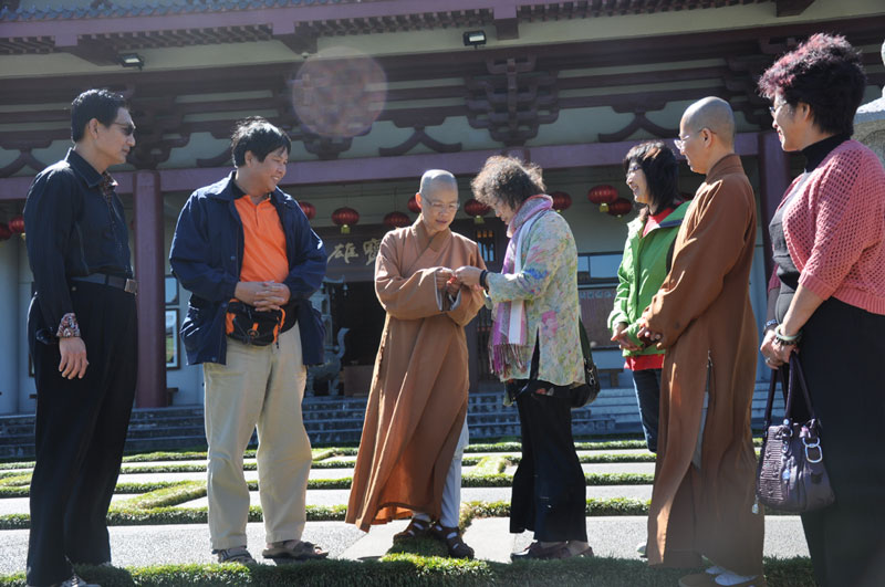 臺灣成功大學醫學院外科教授張玉川夫婦於北島佛光山結束兩場精彩醫學講演後,2月6日上午在住持滿信法師、北島協會理事高華美、陳榮輝夫婦等陪同下巡禮寺院,住持簡介說明整體的唐式建築、殿堂及叢林植栽的培植,希望讓所有前來禮佛者皆能感受這一份靈秀及祥和之氣。大家從蓮池塔建築設計乃至參觀寺院各處,體會大師所說的傳統與現代的融和。張博士夫婦感謝常住熱心接待,紐西蘭北島佛光山是圓滿蔡老師參訪佛光山在五大洲道場心願,在每一處的參訪中,皆感受大師人間佛教的理念,從各具特色的弘法中,能成為大師的弟子是一份福報,希望自己在學術領領上也能像大師一樣造福所需的人。