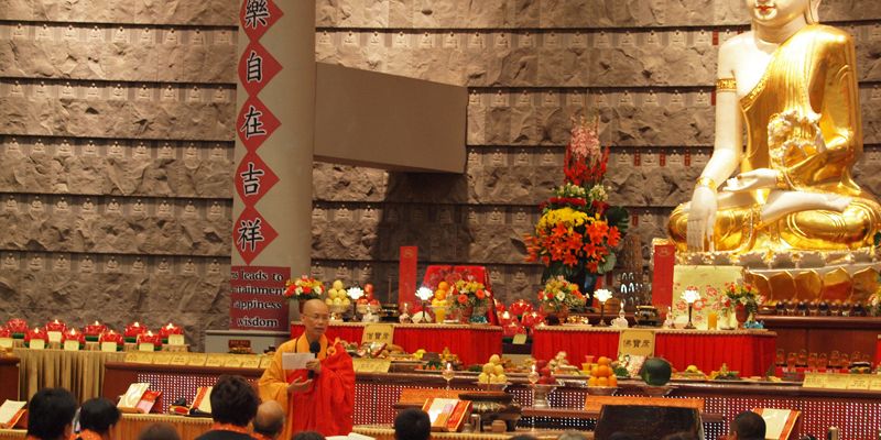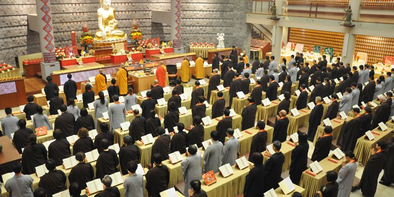 三個小時的法會在豐富莊嚴的壇場如法如儀的儀規中進行,禮佛的大眾心生歡喜,福報增長,遨遊在般若智慧的法海裡。