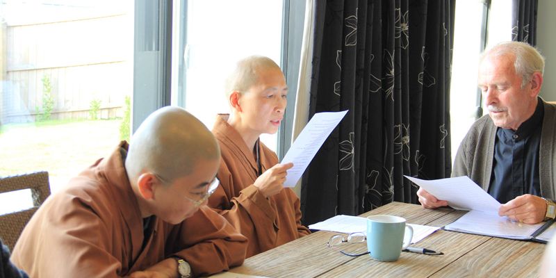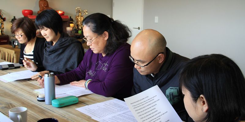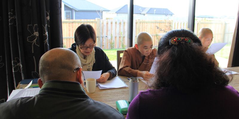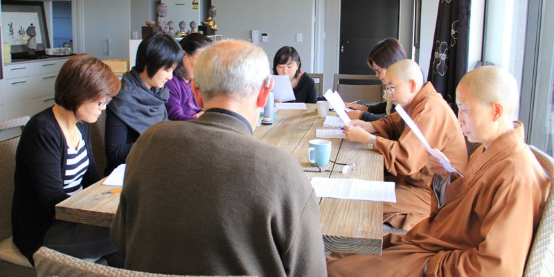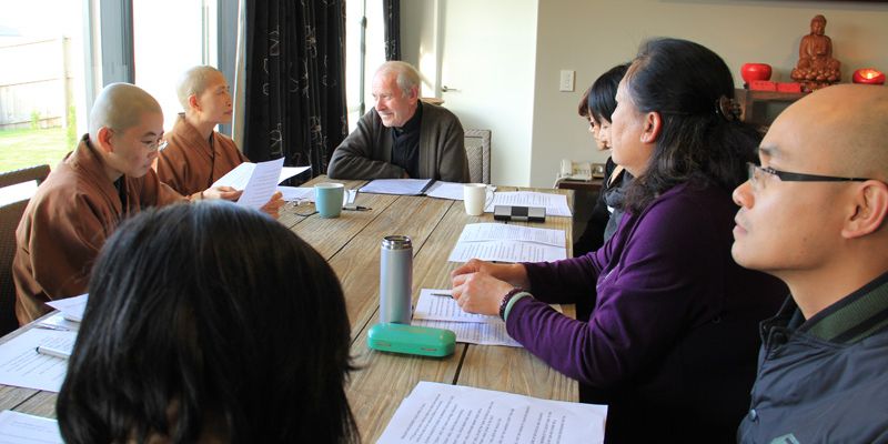 紐西蘭南島協會英文讀書會於4月27日在雲水草堂舉行,南島佛光山監寺覺西法師、妙禹法師以及8位佛光人參加。英文分會會員Peter 以星雲大師著作《366 days with Wisdom》為教材,為佛光人講解大師的生活智慧。