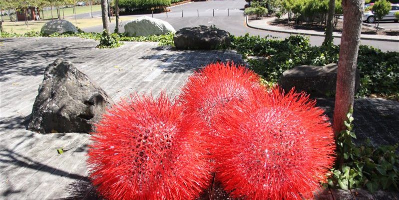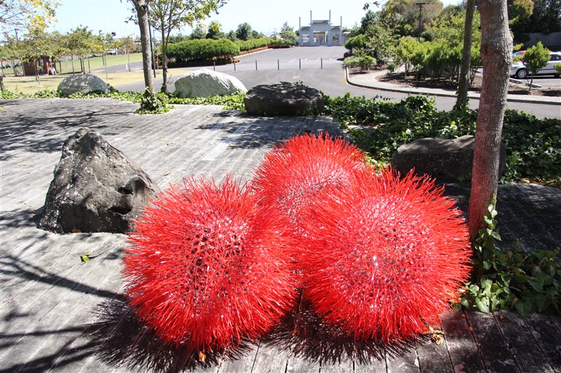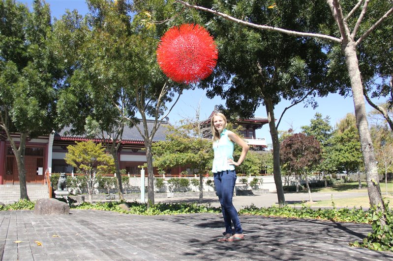 Becca創作的三個球樣作品「Orbs of Aroha」,每個由13000根超過30米長的壓克力管製成,掛在大悲殿前的文化廣場樹上,增添熱鬧喜氣,其創新思想來源於聖誕花樹Pohutukawa鮮豔的紅色,以及Aroha(寓意「愛」)錯綜複雜的網絡,從密集的格局與重複的形式中,在遠處窺探它個中的奧秘。