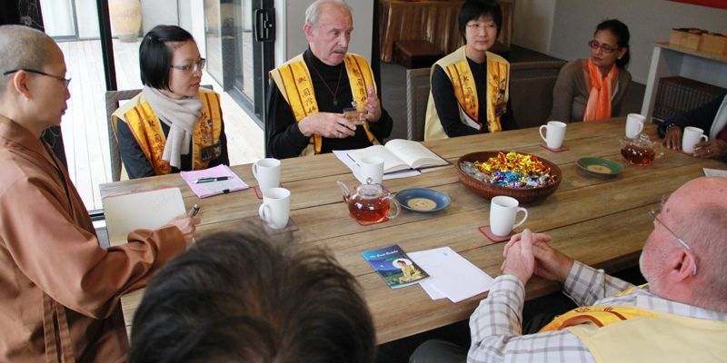 國際佛光會紐西蘭南島協會英文分會於3月9日舉行英文讀書會,英文分會會員Peter與9位佛光人討論皈依三寶及五戒的意義。Peter解釋成為正式的佛教徒就是前往寺院由法師授證皈依三寶。他提到兩年前於北島佛光山參加皈依三寶典禮時,他感動萬分,這是佛法的力量。李思嫻會長表示,經過法師的說明後,她明白皈依和持戒是一生重要的修持,所以時刻提醒自己不犯戒。劉盎齊表示他曾在多年前皈依及受戒,但是4年前在本山參加由星雲大師主持的皈依三寶及五戒殊勝典禮,讓他至今都難忘,他鼓勵佛光人要保握因緣參加皈依及受戒。他也補充守五戒是最基本的戒律,確保自己來世做人,並擁有正確行為及思想。