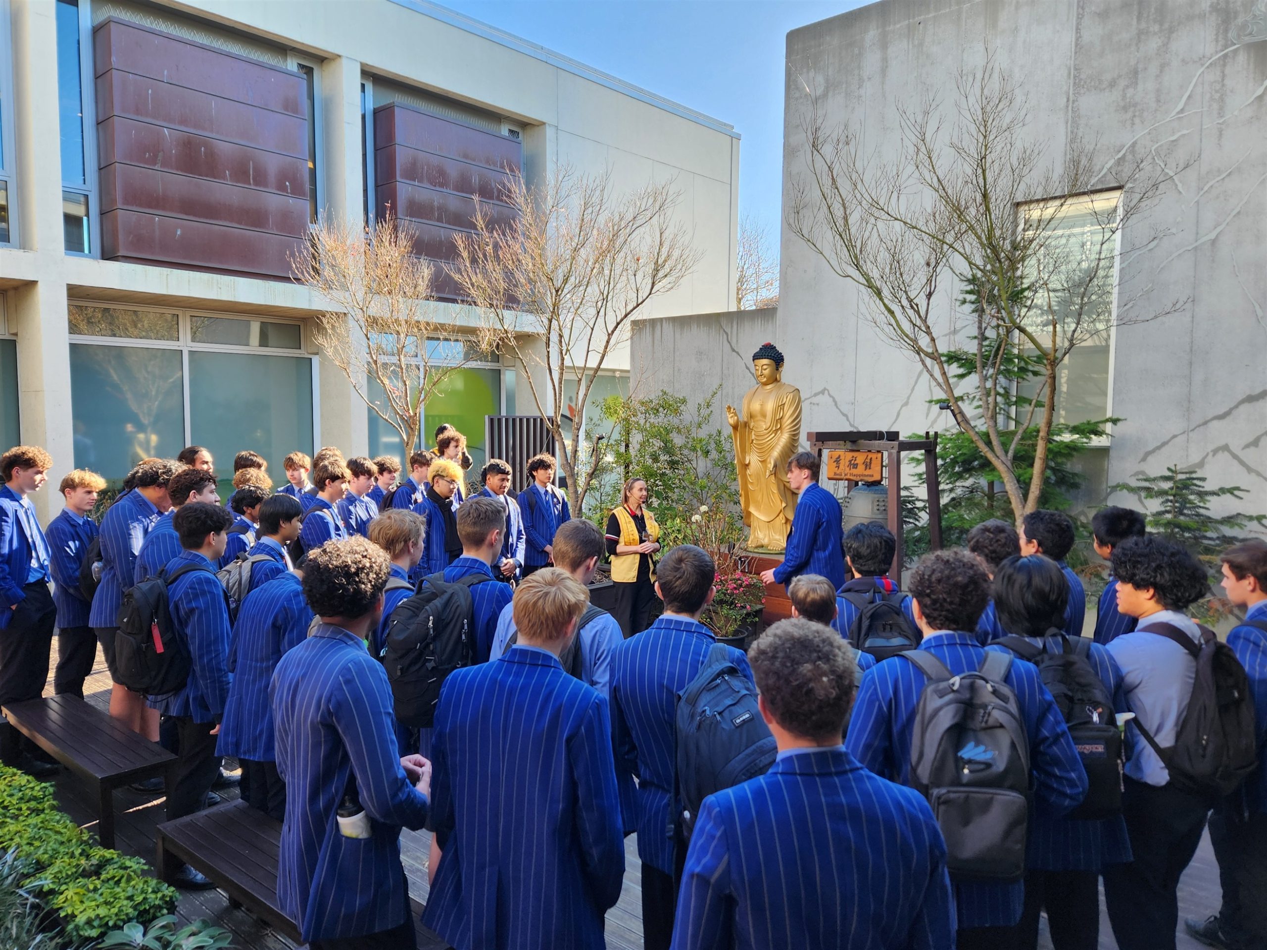 紐西蘭南島基督城St Thomas男子高中於8月14日在學校宗教研究部主任Stephen Kennedy的安排下,前來南島佛光山進行宗教文化交流。4位老師帶領85名12年級學生,在佛光人的熱情接待中歡喜參學。